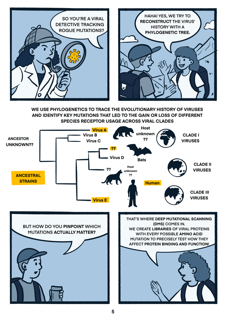 Tags: Zoonotic spillover · Viral Evolution · One Health · Virology · Science Communication · Comic Explainer